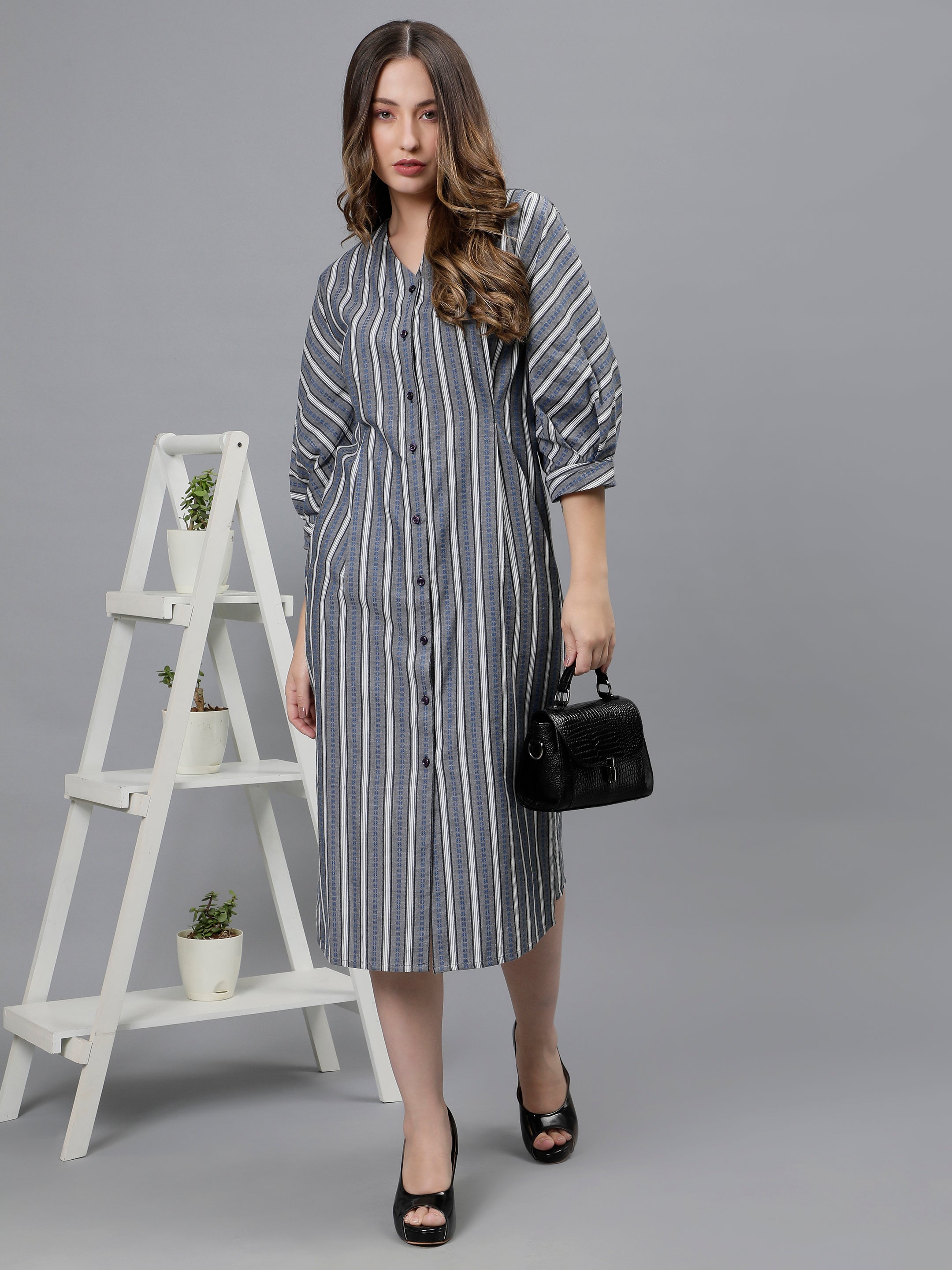 Elevate your ensemble with our Woven Striped Buttoned Shirt Dress and experience the perfect blend of fashion and function