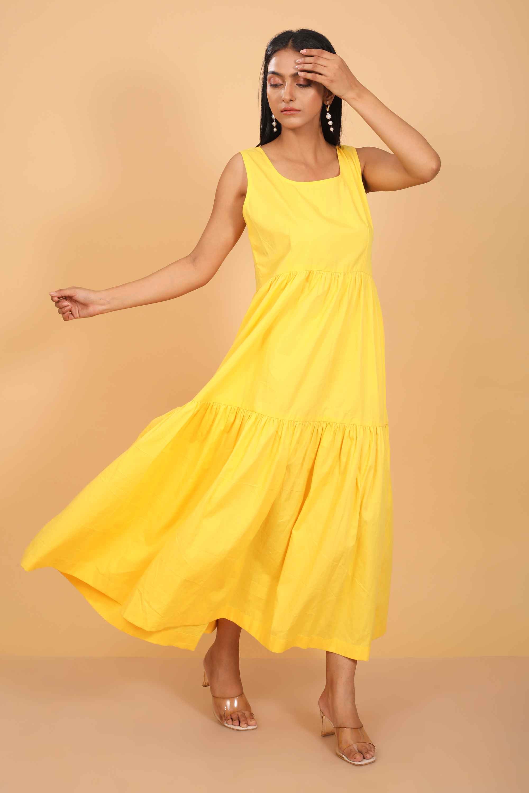 Fall in love with our adorable yellow tiered maxi dress, crafted from soft poplin fabric. With its flair, stylish design, and eye-catching pop-out effect, this dress is both cute and classy—perfect for any occasion. Effortlessly stylish and comfortable, it’s a must-have addition to your wardrobe!